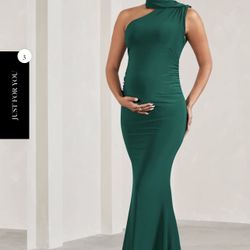 Green Ruched Asymmetric Maternity Maxi Dress$85Floral Park, NY