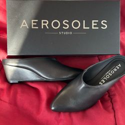 New aerosols Mule Type Low Wedge Black Leather $20Bardonia, NY