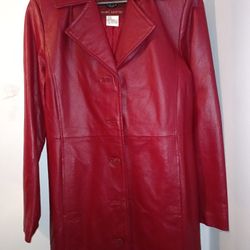 100% Genuine Ruby Red Leather Trench Coat$125New York, NY