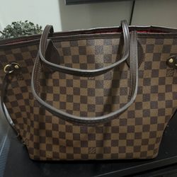 Louis Vuitton Medium Brown Checkered Tote Bag with Red Interior.$1,500Brooklyn, NY