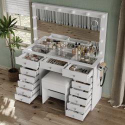 Makeup Vanity with Charging Station, 15 Drawers, HD Mirror, 12 LED Lights$110New York, NY