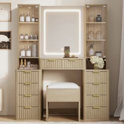 Vanity Makeup Dressing Table Stool Set w/6 Drawers & LED Lighted Sliding Mirror$85New York, NY