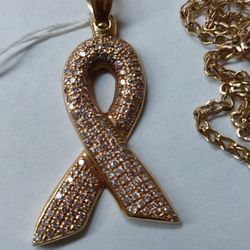 14Kt Yellow Gold 0.52 Ctw Diamond Studded Rose Gold Front Breast Cancer Awareness Ribbon Chunky Pendant 40 mm Drop$595West Babylon, NY