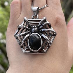 Mens Womens Black Onyx Widow Spider Web Pendant Necklace Stainless Steel$22La Gurda Arpt, NY