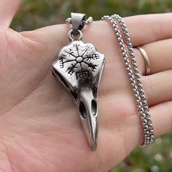 Mens Viking Raven Crow Skull Pendant Necklace Stainless Steel Vegvisir$19La Gurda Arpt, NY