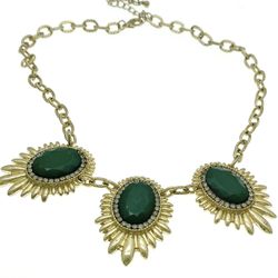 Gold Tone Statement Necklace Rhinestones Faux Green Faceted Stones $13Ossining, NY