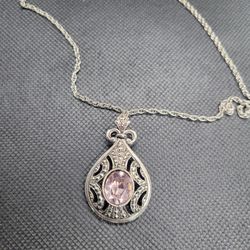Silver Tone Necklace With Pink Stone Pendant $25Little Falls, NJ