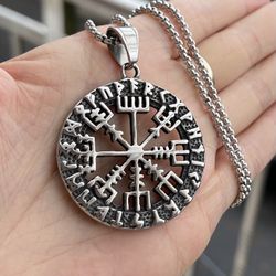 Mens Norse Viking Rune Vegvisir Compass Pendant Necklace Stainless Steel$18Queens, NY