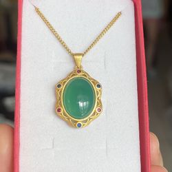 Women's Plated Natural Genuine Real Green Jade stainless steel Pendant Necklace$33Queens, NY