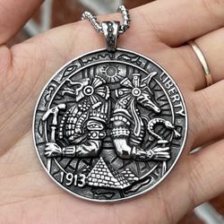 30 Inch Heavy Mens Vikkng Dragon Wolf Pendant Necklace Chain Set$69Queens, NY