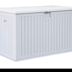 90 Gallon white pretty big Deck Box , Outdoor Double-Wall Storage for Patio Furniture Cushions, Garden Pool Accessories, Water Resista$100Queens, NY
