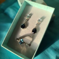 London Blue Topaz & Sky Blue Topaz. 925 Sterling Silver Set-Earrings & Ring size 8$85Brooklyn, NY