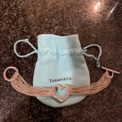 Tiffany & Co Silver Multi Strand Mesh Open Heart Bracelet$188Riverdale, NJ