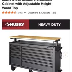 New Husky Tool Storage 62 in. W Heavy Duty Matte Black Mobile Workbench Cabinet with Adjustable Height Wood Top$900Bellerose, NY