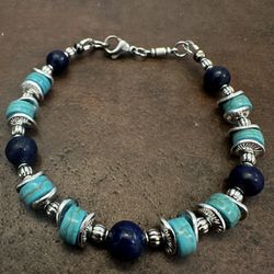 Navy Lapis Lazuli and Green African Turquoise Beaded Bracelet.$35Woodmere, NY