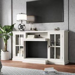 59 in. Deluxe White TV Stand Features glass cabinet doors Designed for center-of-room placement, fits TVs up to 65 inches brand new in box $150 N138(2$150Springfield, NJ