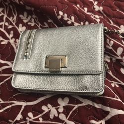 Preowned Cole Haan Silver Metallic Pebble Grain Handbag + Matching Wallet $10Garden City P, NY
