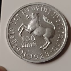 100 MARK 1923 WEIGHT: 5.5 GR. METAL: ALUMINUM. HIGH GRADE. LUSTERY.DIAMETER: 38X2.4MM. HIGH RELIEF.$32Brooklyn, NY