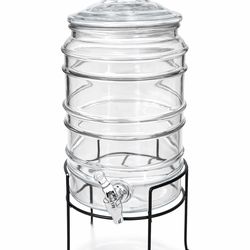 Glass beverage dispenser with spigot and metal stand$15Edison, NJ