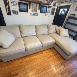 Macys Beige Farmhouse Sectional Sofa with Chaise with WASHABLE COVERS.$300Wantagh, NY
