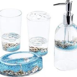 Locco Decor 4 Piece Acrylic Liquid 3D Floating Motion Bathroom Vanity Accessory Set Conch