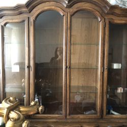 Solid Wood China Hutch 9 Shelves Each Section Lights. PRISTINE CONDITION NOT A SCRATCH $150Garden City P, NY