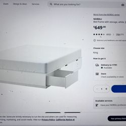 IKEA Nordli white king bed frame w 6 pull out drawer storage w Stearns & Foster mattress $300Woodbury, NY