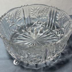Clear Glass Crystal bowl with Claw Feet Starburst Floral Leaves Centerpiece Cut$50Madison, NJ