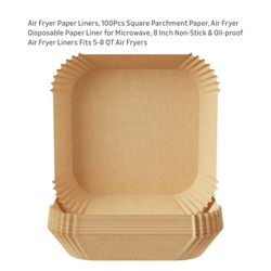 Brand new Air Fryer Paper Liners, 100Pcs Square Parchment Paper, Air Fryer Disposable Paper Liner for Microwave, 8 Inch Non-Stick & Oil-proof Air Frye$7Queens, NY