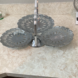 Vintage 2 Tier 3 Tray Folds Up Serving Trays Metal Unusual- Clean - Look$10Middletown Township, NJ
