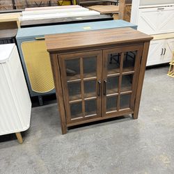 Large Sideboard Buffet Cabinet with Storage, 32" Farmhouse Brown Kitchen Coffee Wine Bar Cabinet with 2 Glass Doors, Wood Mid Century Modern Side Boar$100Union, NJ