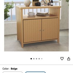 New in box Grand patio Outdoor Storage Cabinet with Walnut Wood Tabletop Weatherproof Wicker Buffet Cabinet 2-Door Wicker Sideboard for Garden Patio P$120Union, NJ