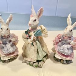 3 Springtime / Easter Bunny Rabbit Resin Figurines Holiday Decor Mother + 2 Daughters Vtg.$5Garden City P, NY