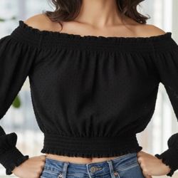 H&M Divided Black Off-the-Shoulder Swiss Dot Blouse Size S$4Brooklyn, NY