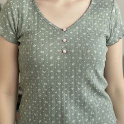 Happily Grey Floral Print Henley Top - Medium$8Brooklyn, NY