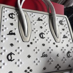 Christian Louboutin Cabata Studded Tote Bag – White Leather, Signature Red Interior $475Brooklyn, NY