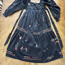 Kimchi Blue Black Embroidered Midi Dress - Puff Sleeves, Hearts & Folk Details, Excellent Condition!$40Bergenfield, NJ