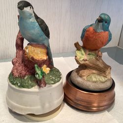 2 1980s Porcelain Bisque Musical Figurines Blue Bird of Happiness Matte Finish$20Garden City P, NY