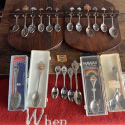 Vintage Historic US States Collectible Spoon Lot (22) w/ Wall Holders$1Old Bridge, NJ