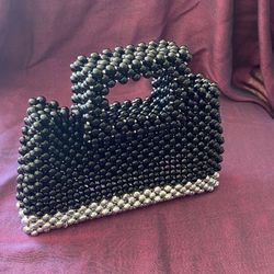 Black & Silver Evening Bag Beaded Top Handle Purse Handbag 100% Handmade$100South Farmingdale, NY