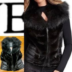 GUESS Black edge Faux Fur & Faux Leather Moto Vest size M$55Staten Island, NY