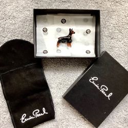 Vtg. Doberman Dog Enamel Brooch Erwin Pearl Pin Gold Plated + Box $90Garden City P, NY
