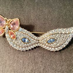 1990s 22K Gold Plated Swarovski Signed Crystal Pave Butterfly Masquerade Mask Brooch Retired Pin$140Garden City P, NY