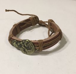 Brown leather bracelet with golden jesus and mary charm$8Piscataway, NJ
