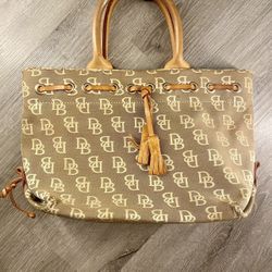 Vintage Dooney & Bourke DB Monogram Tote Bag Brown Leather Trim Tassel Handbag$34West Orange, NJ