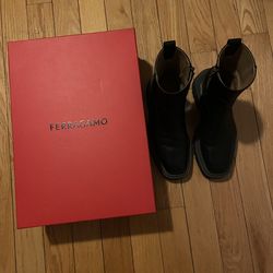 FERRAGAMO Ankle Boots US 10 EU 42 Black Leather Grey Accent Side Zip$360Queens, NY