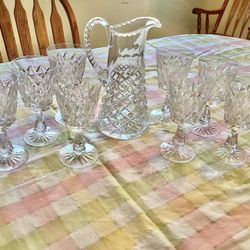 Vtg. 1980s Waterford City Factory, Kilbarry, Ireland Crystal 9 Pcs. Set Pitcher + 8 Glasses $275Garden City P, NY