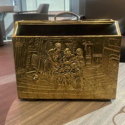 Silversmith Quality England Scene Embossed Brass and Wood Magazine Holder Rack by Lambard$300Kenilworth, NJ