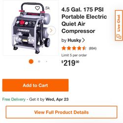 Husky Silent Compressor 4.5 Gallon Dual Attachment $100Hawthorne, NJ