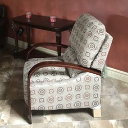 The set features a beige leather couch, a Center Cushion and matching reclining chair. $550Nutley, NJ